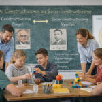 Le socio-constructivisme met en avant l’idée que les interactions sociales sont essentielles à l’apprentissage. Pour Vygotski, les enfants apprennent grâce à la collaboration et à l’échange d’idées avec les autres. Les pairs et les adultes jouent un rôle crucial dans ce processus, en offrant des perspectives différentes et en guidant les élèves vers des façons plus sophistiquées de penser et de résoudre des problèmes. Le rôle de l’enseignant, dans ce cadre, est de créer un environnement d’apprentissage collaboratif, où les élèves peuvent échanger leurs idées et résoudre des problèmes ensemble.
